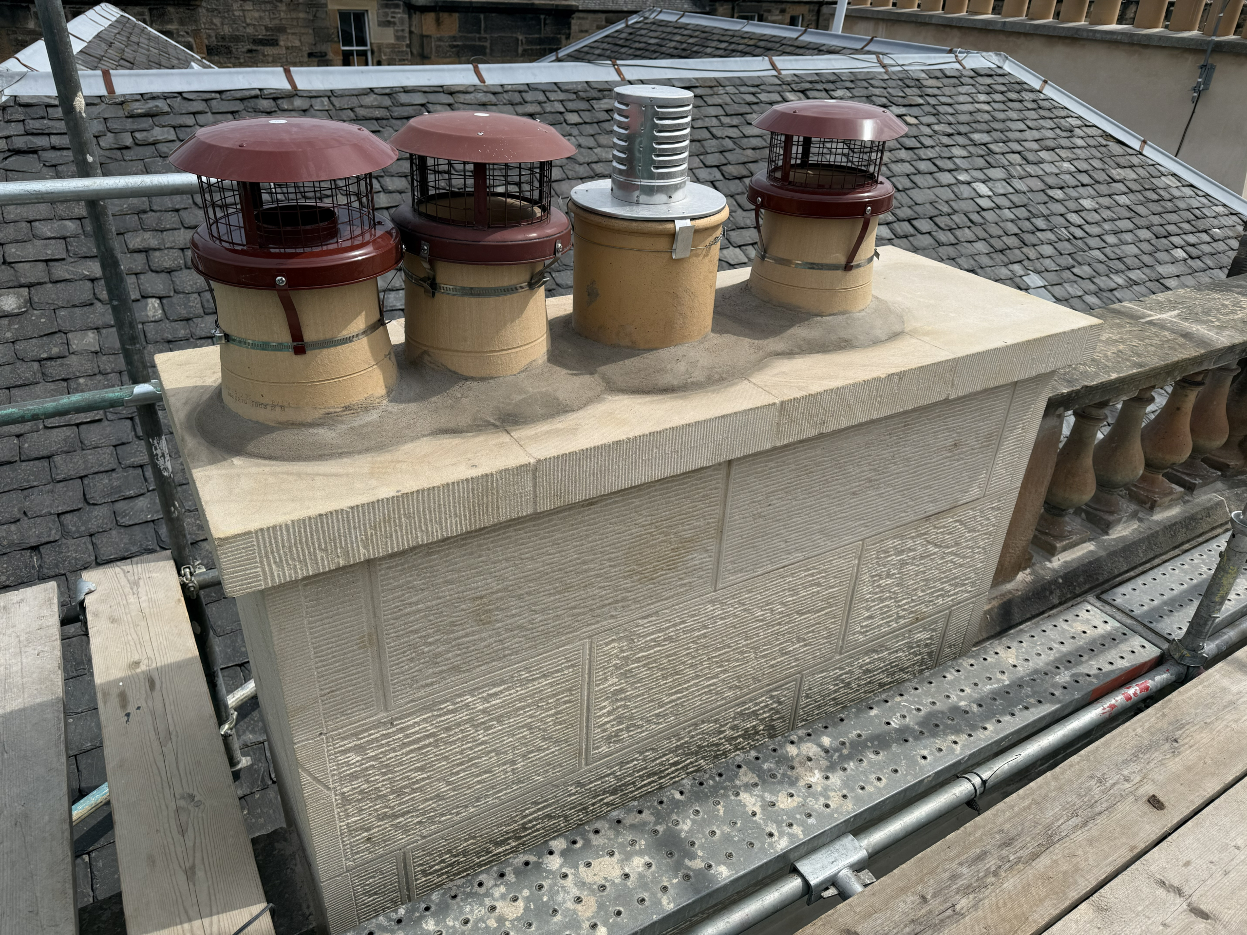 At Edinburgh Stone Repair Ltd we specialise in chimney rebuilds and repairs on traditional stone built chimney throughout Edinburgh and the Lothians. We carry out photographic and rope access surveys to access what remedial work method is best for your chimney if it's rebuilding or repair required.